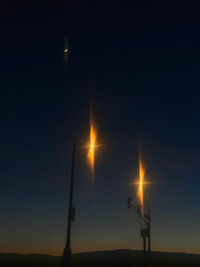 Street lights look like works of art when the sun sets here.