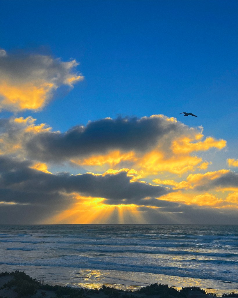 Ocean Beach often sees dramatic god rays shining through the clouds.